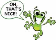 In its very big voice the little frog shouts, "OH! THAT'S NICE!" and hops away.
