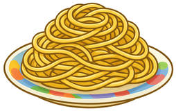 Grandma cooked a noodle as long as a bus and covered it in yummy sauce.