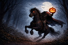 The Horseman was said to be a ghost who rode a fast black horse at night. He had lost his head long ago and carried a pumpkin instead.
