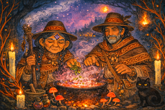 Brujos and brujas knew many secrets about nature. They used special plants to make potions that could heal sick people and keep them safe. Some say they could talk to animals or call the wind and rain. Other brujos could make glowing lights appear in the dark.